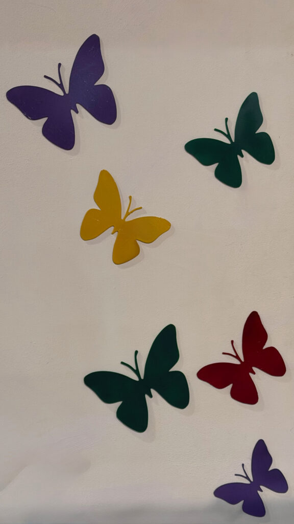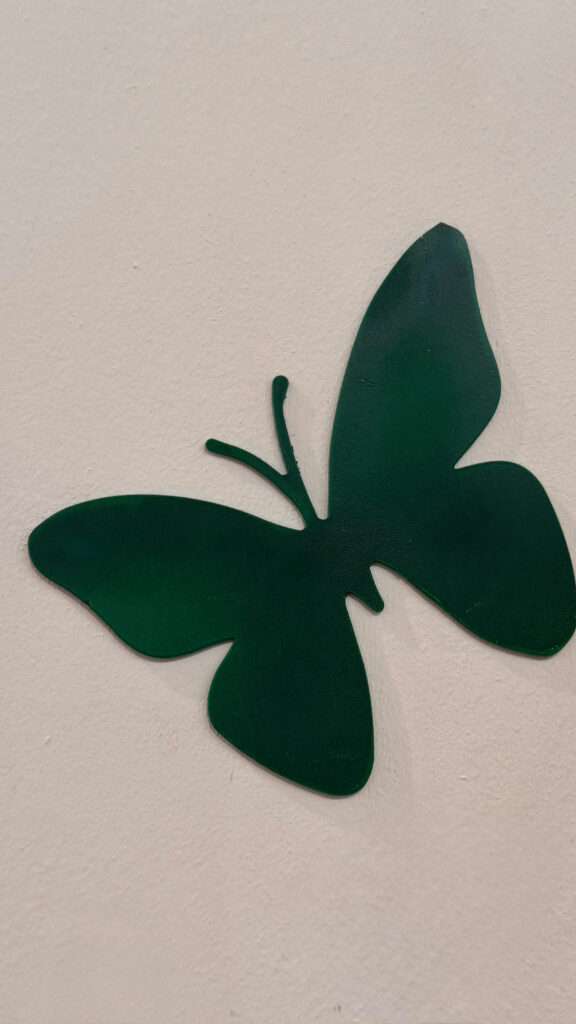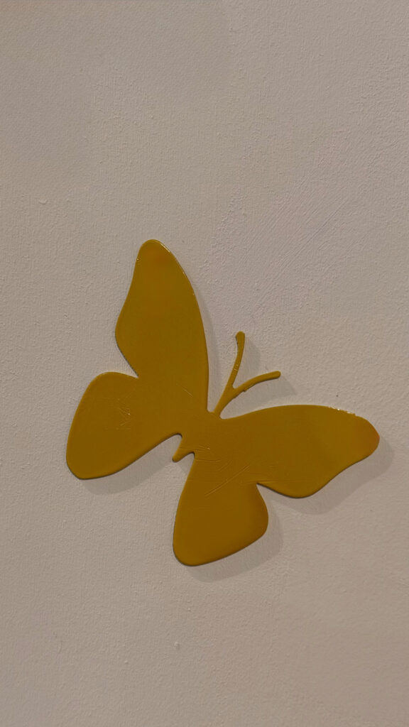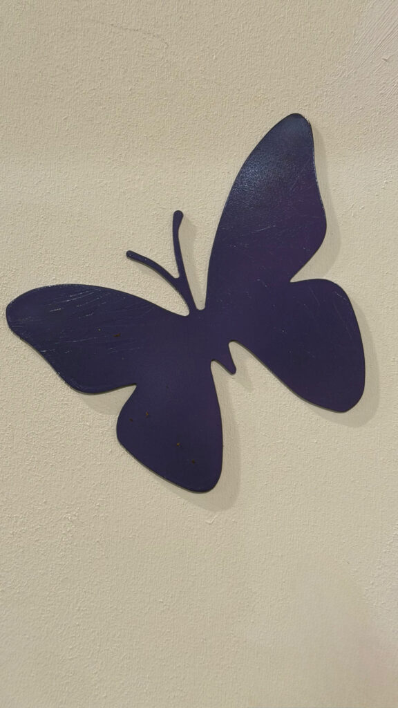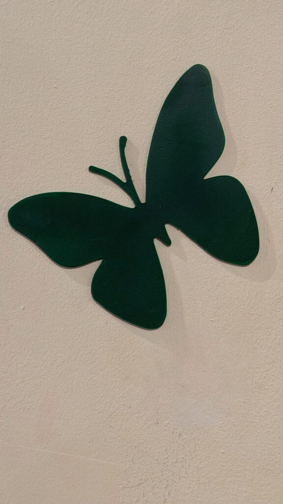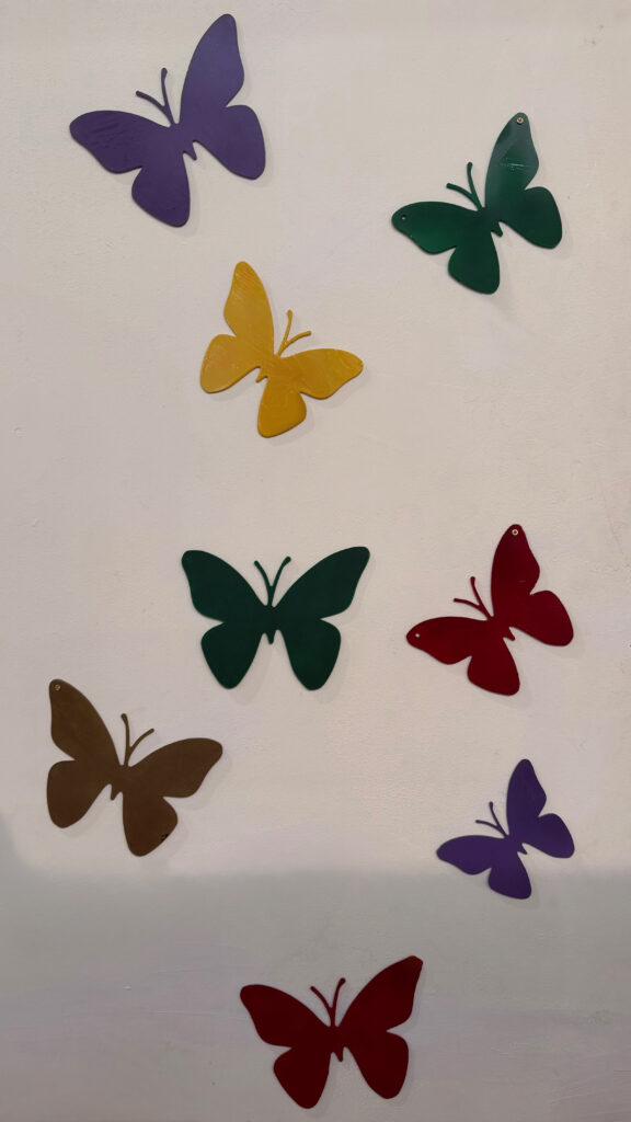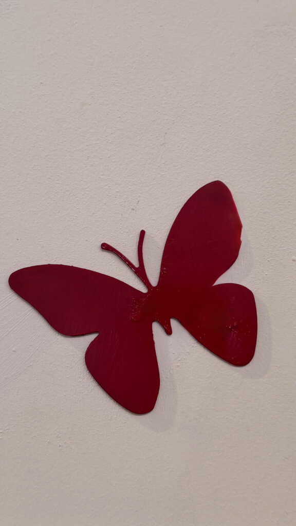 L’uso del metallo, materiale duro e resistente, in contrasto con la forma delicata della farfalla, rafforza il valore politico dell’azione. La fragilità non viene negata, ma trasformata in struttura; il dolore non è nascosto, ma reso visibile e attraversabile. In questo senso, l’installazione performa un autentico atto di trasformazione: ciò che nasce come simbolo di ferita si evolve in dichiarazione di forza.